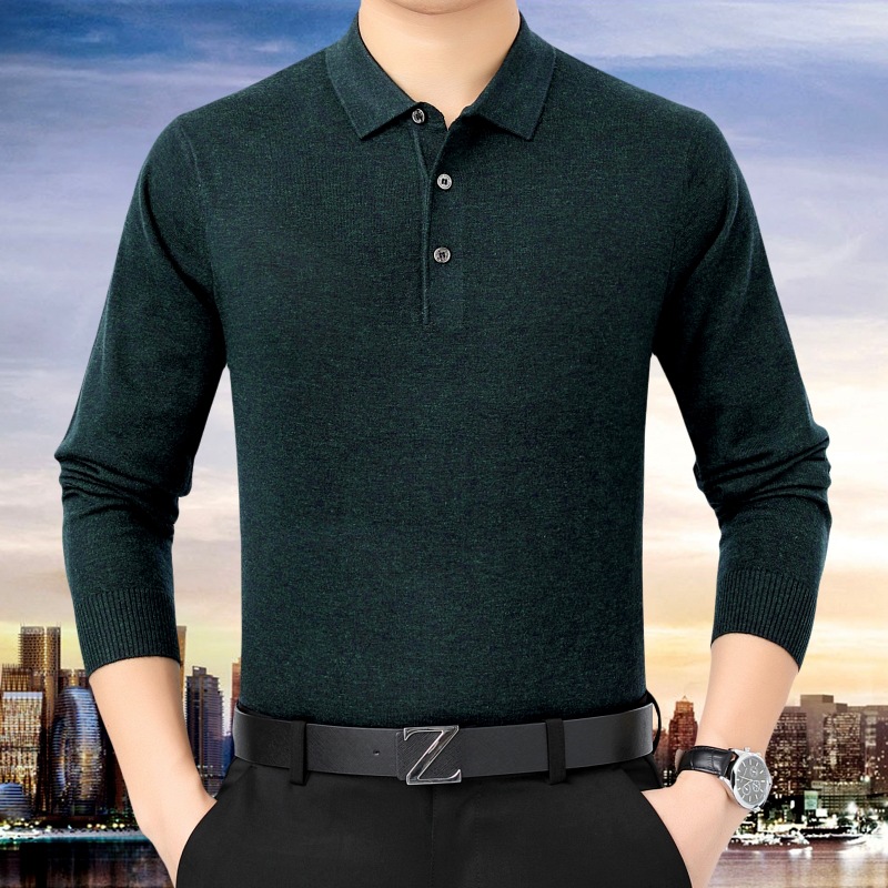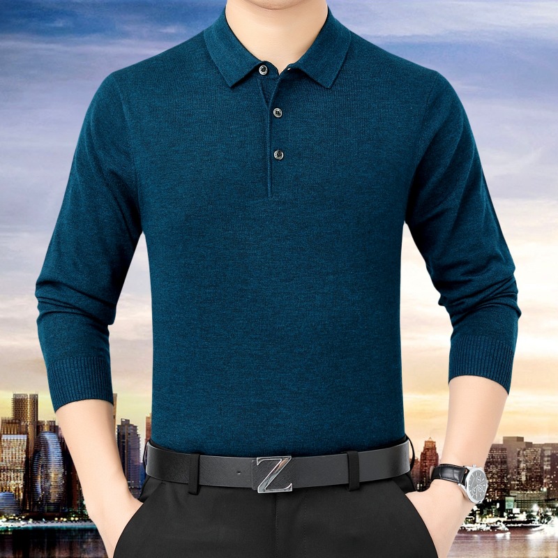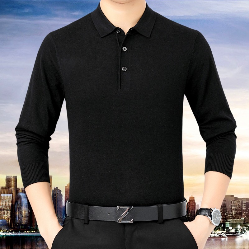 2022 Spring And Autumn Middle-aged And Elderly Men’s Long-sleeved Lapel T-shirt Loose Trendy And Comfortable