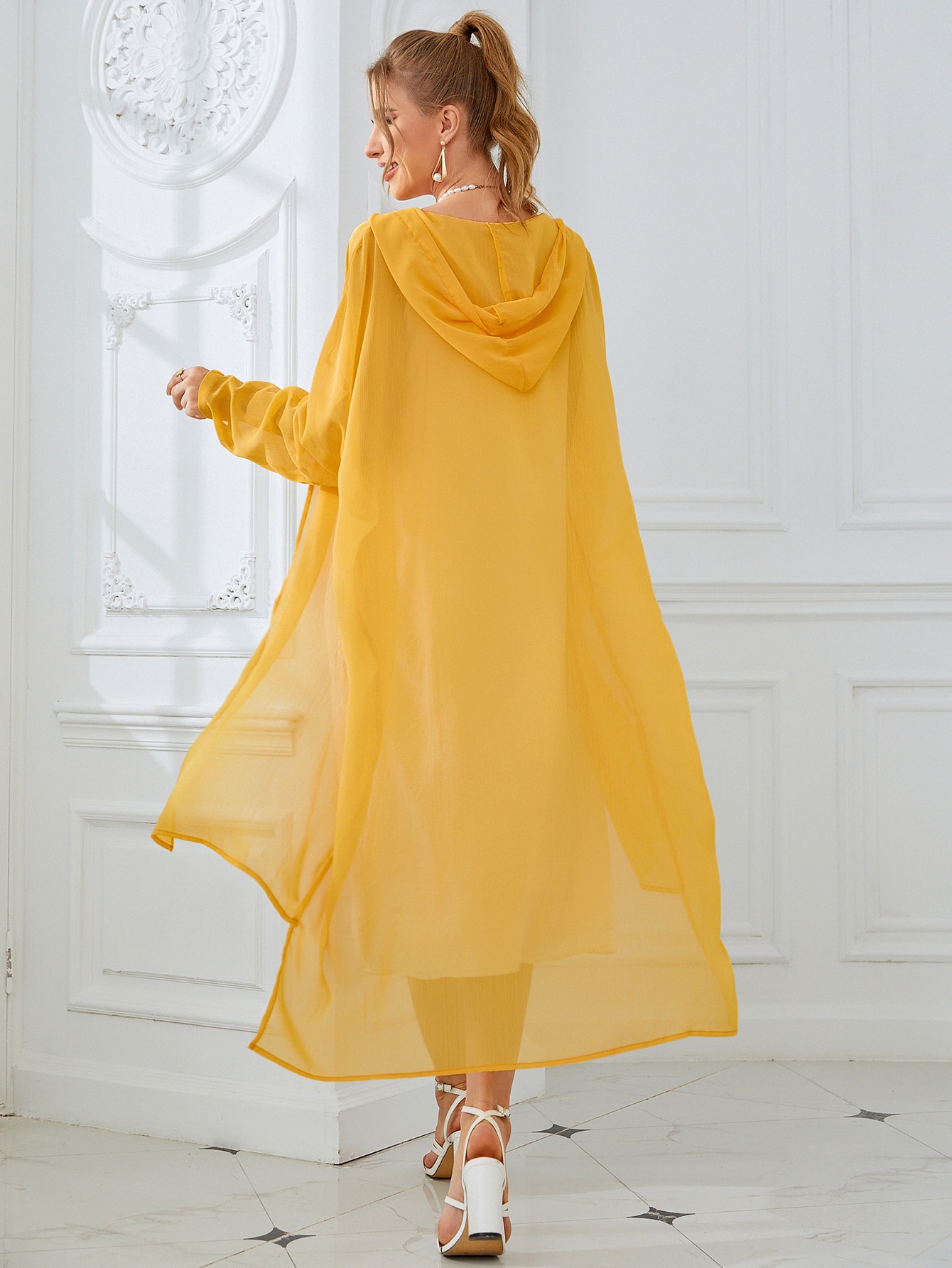 Batwing Sleeve High Low Hooded Coat