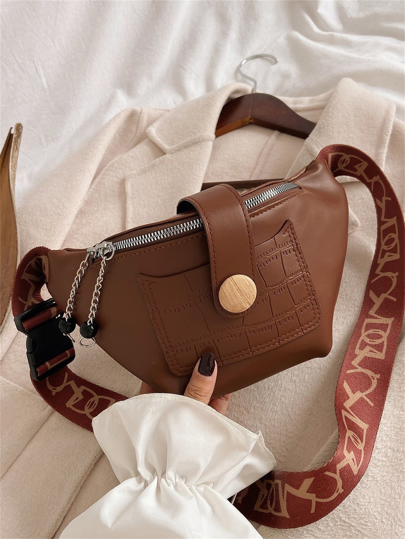 Crocodile Embossed Pocket Front Design Waist Bag