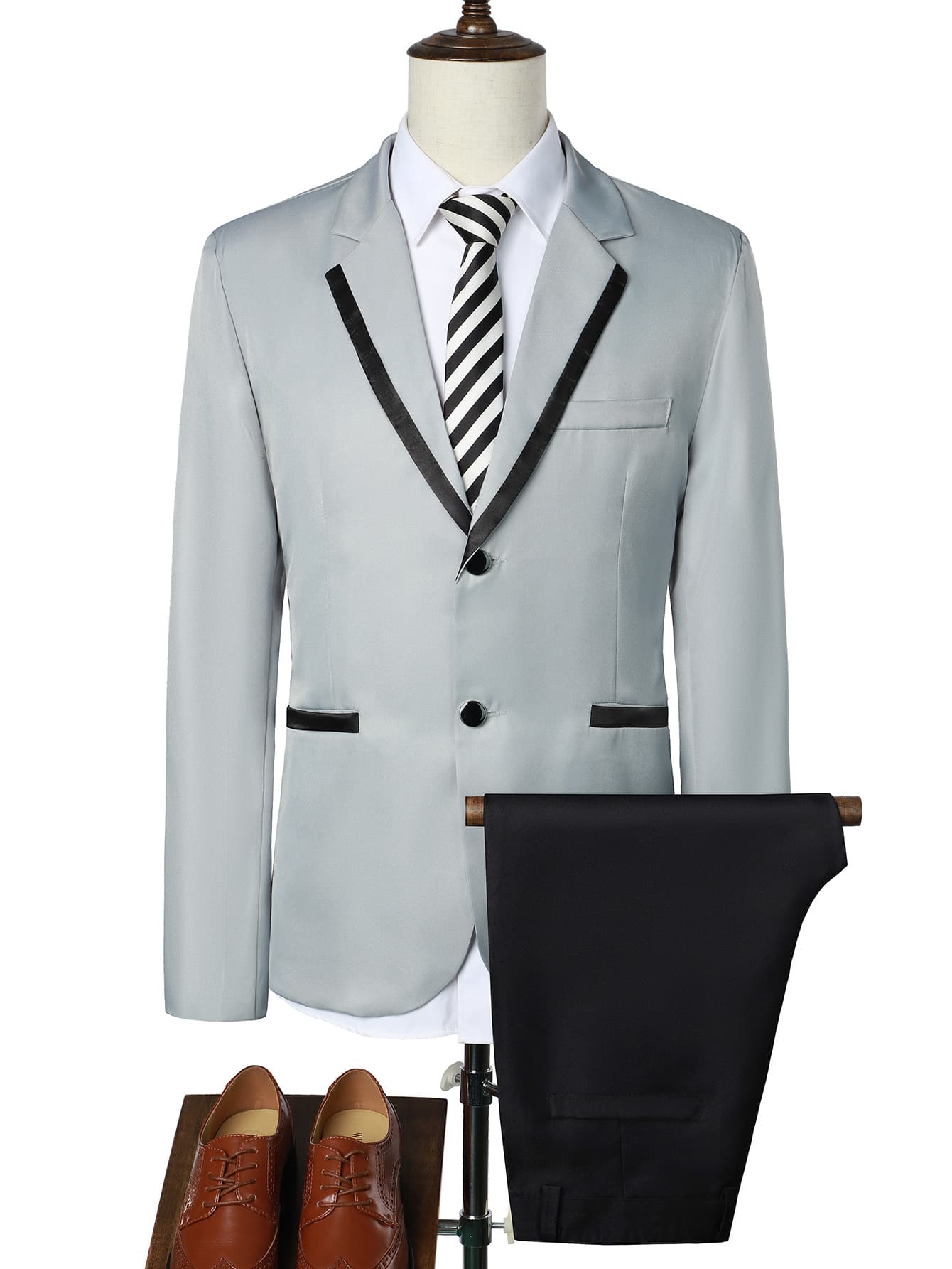 Men 1pc Contrast Trim Blazer & 1pc Tailored Pants
