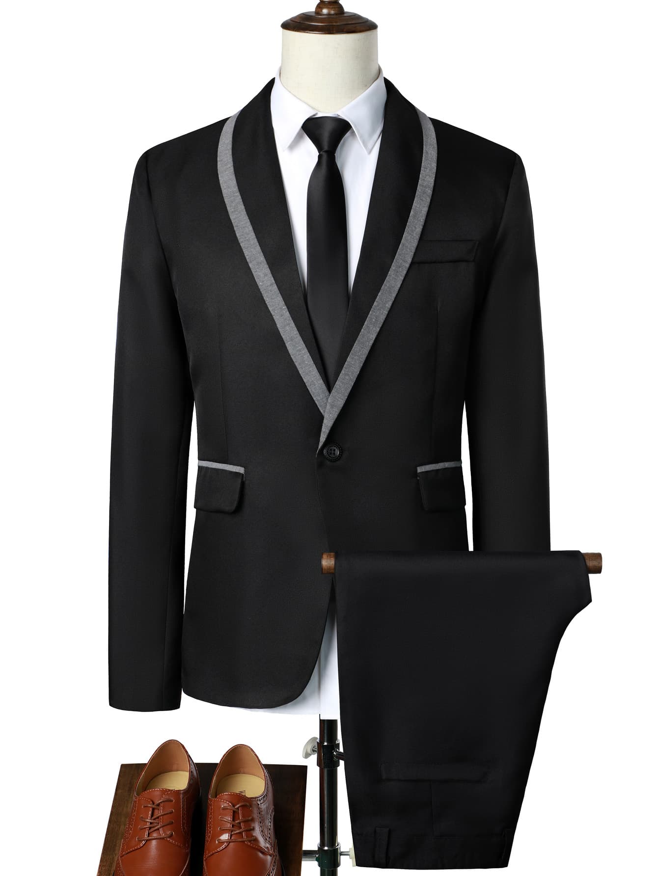 Men 1pc Contrast Trim Shawl Collar Blazer & 1pc Tailored Pants