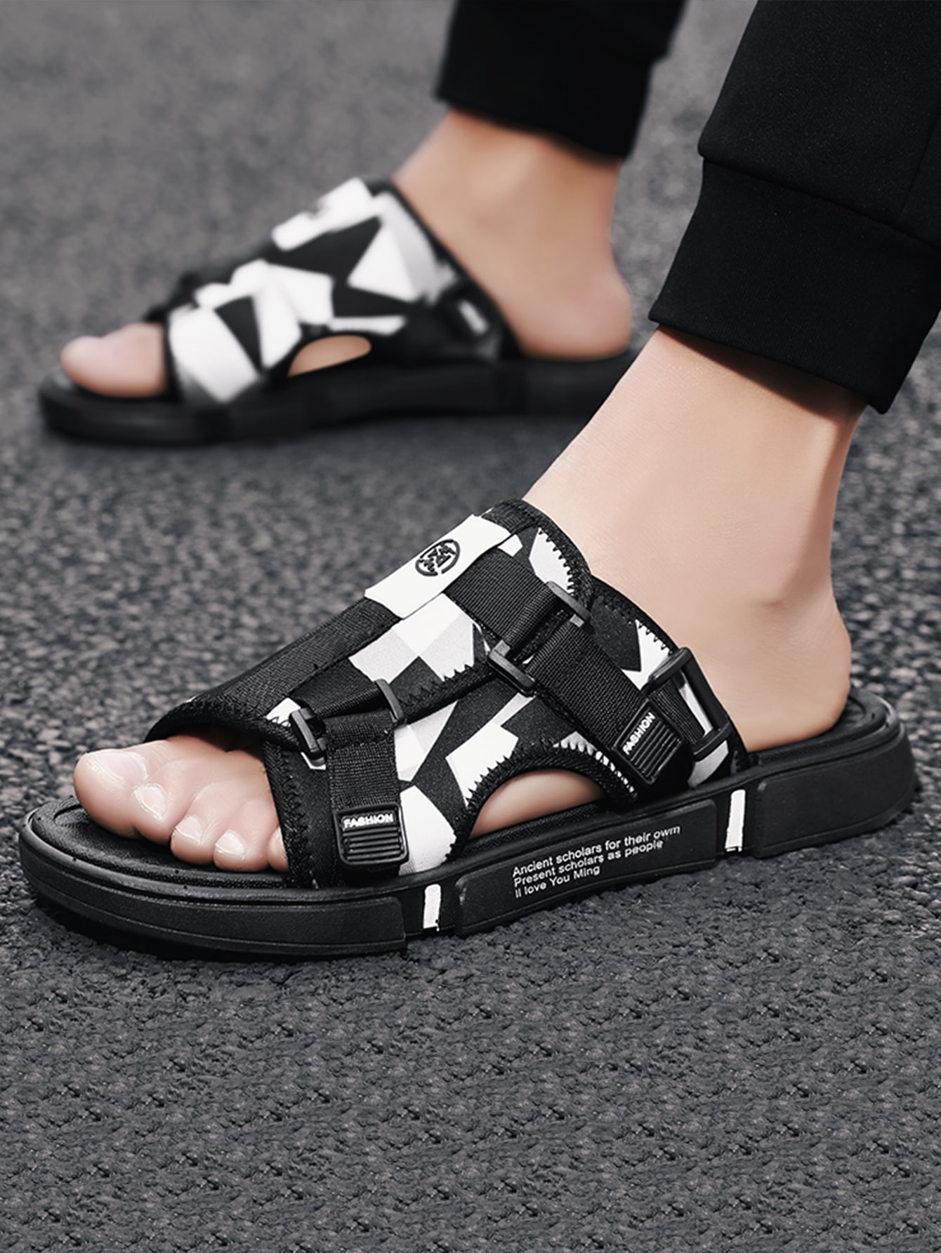 Men Geometric Print Letter Patch Decor Multi-way Wear Sport Sandals