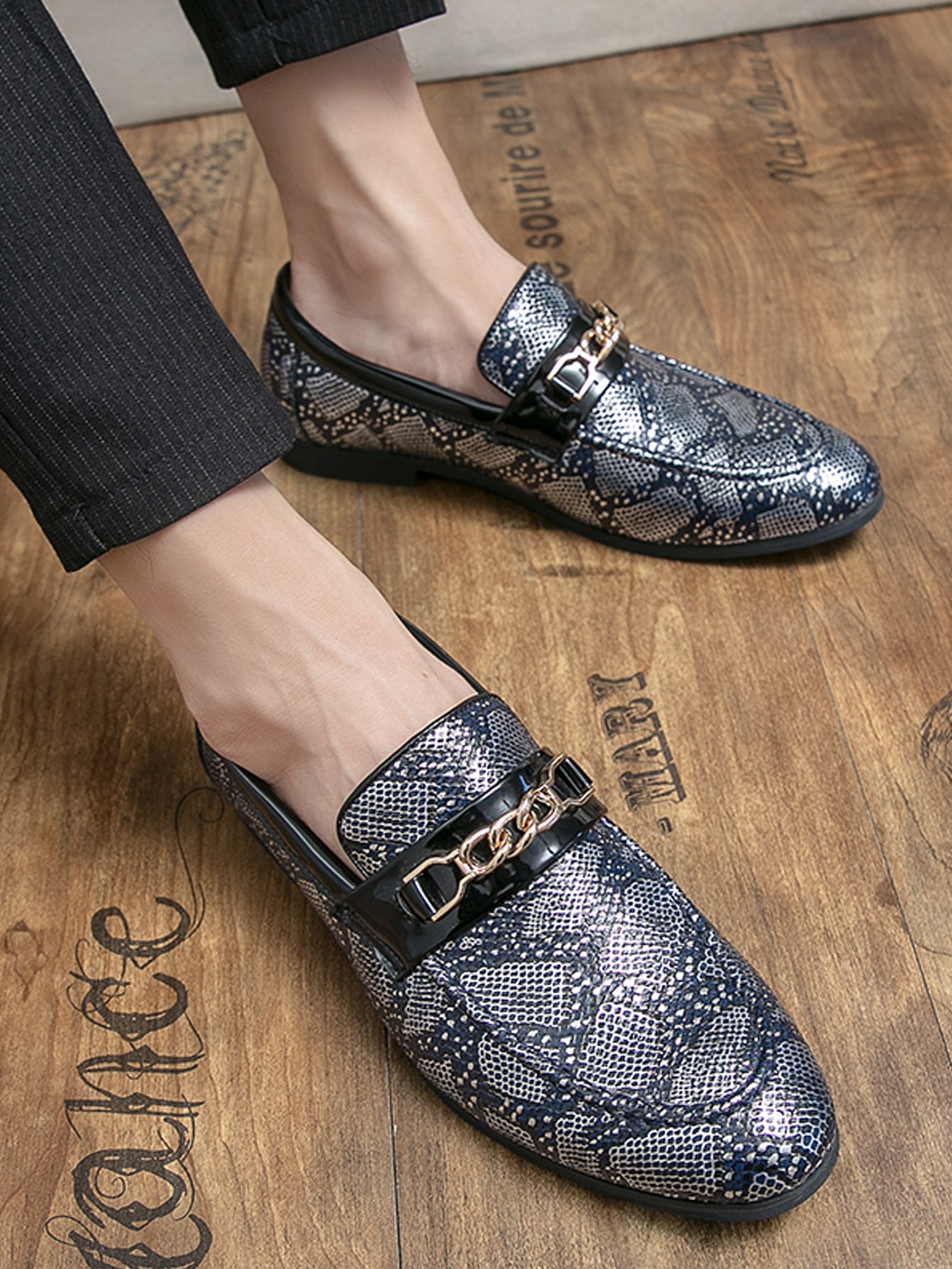 Men Snakeskin Print Chain Decor Loafers