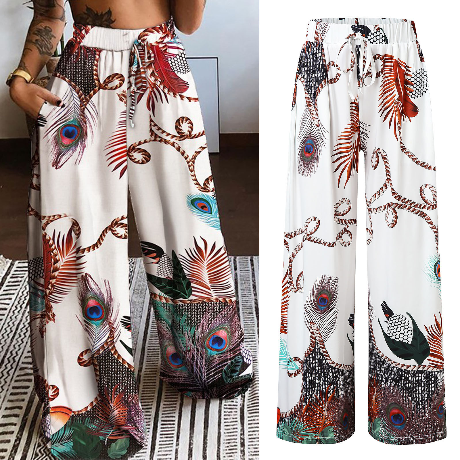 Brand Name: ISHOWTIENDAPant Style: Wide Leg PantsMaterial: PolyesterFit Type: LOOSELength: Full LengthDecoration: NONEOrigin: CN(Origin)Season: Spring/AutumnWaist Type: HIGHModel Number: PantsPattern Type: PrintStyle: BohemianFront Style: FlatAge: Ages 18-35 Years OldFabric Type: BroadclothClosure Type: Elastic WaistGender: WOMENkobieta spodnie: pantalon femmepantalones mujer: pants for womenpantaloni donna: spodniejoggers women: ropa mujerstreetwear women: spodnie dresowe damskie