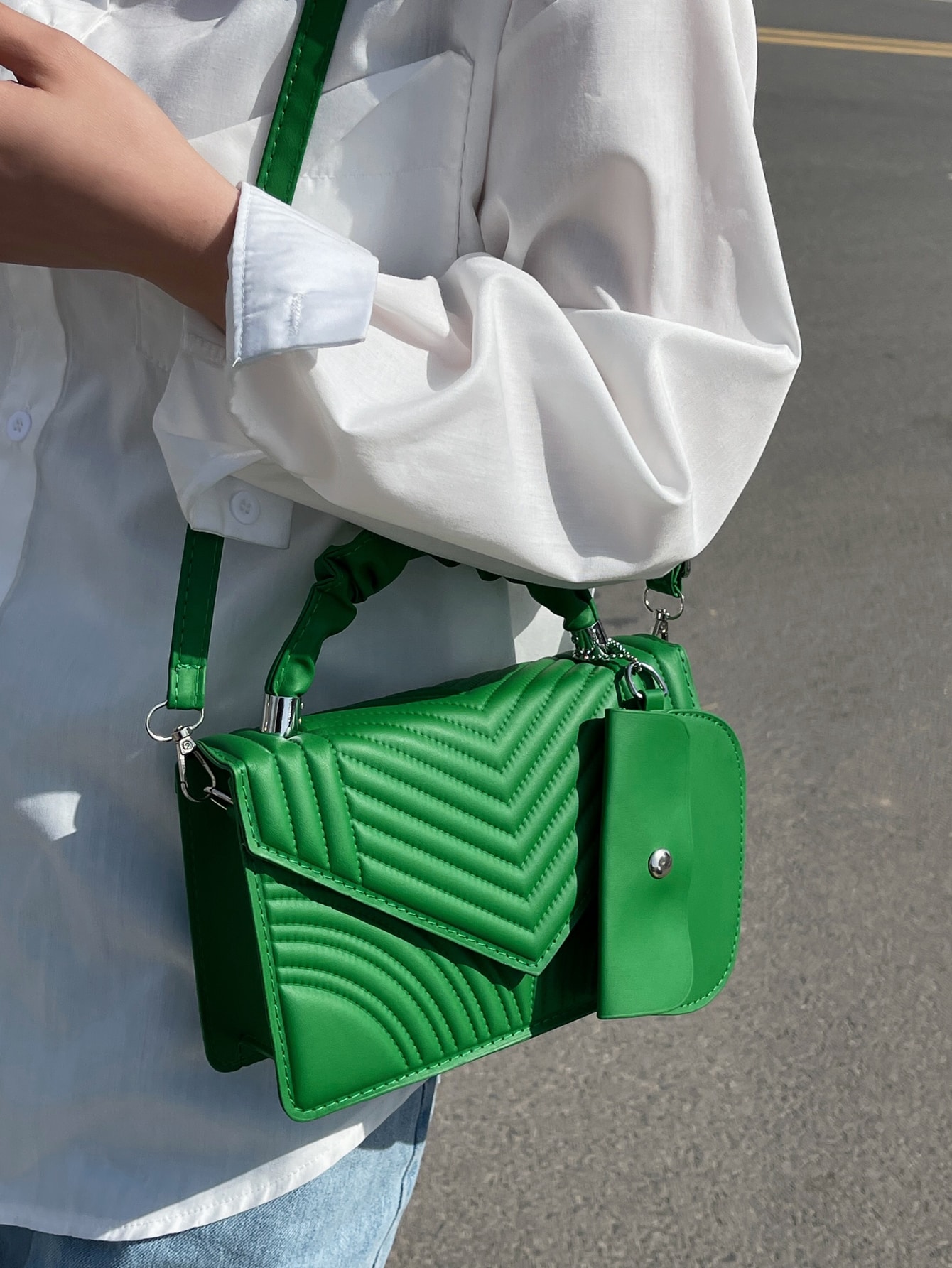 Quilted Top Handle Flap Square Bag With Coin Purse